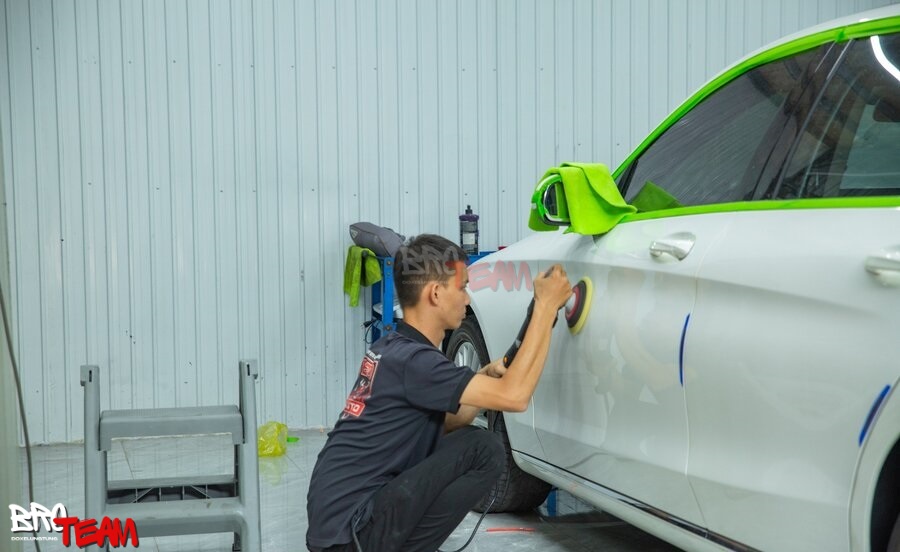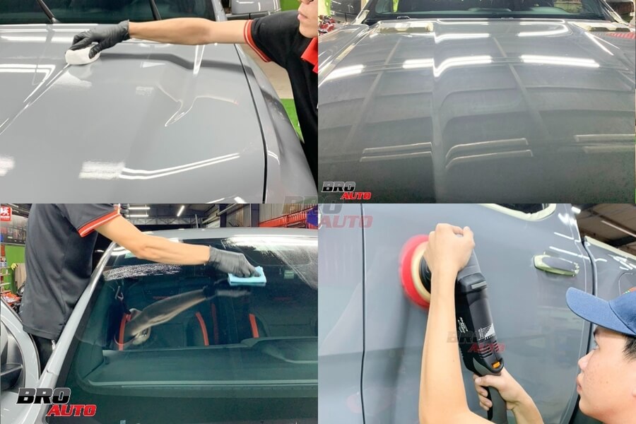 Đánh bóng và hiệu chỉnh sơn: Sử dụng máy đánh bóng chuyên dụng để xử lý các vết xước nhẹ, xoáy lông mèo hoặc tình trạng sơn bị xỉn màu. Giai đoạn này không chỉ cải thiện thẩm mỹ mà còn tăng độ bám dính cho lớp ceramic.
