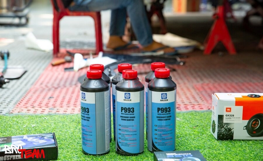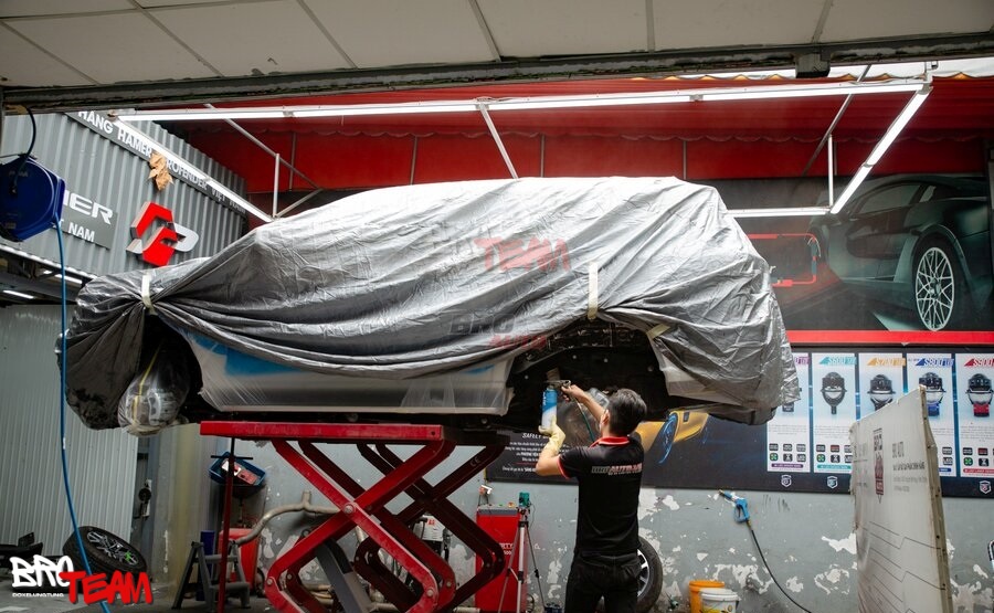 Vệ sinh gầm xe: Bước đầu tiên là vệ sinh sạch sẽ và làm khô gầm xe. Chúng tôi loại bỏ tất cả bụi bẩn, dầu mỡ và các chất bẩn khác, đảm bảo bề mặt gầm sạch sẽ để sản phẩm có thể bám dính tốt.