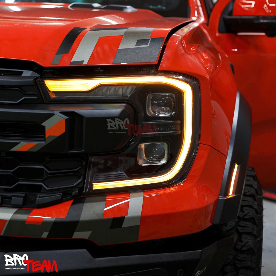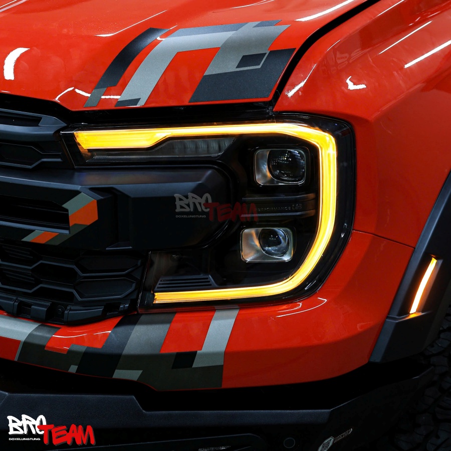 Điểm khác biệt: LED chất lượng cao, ánh sáng sắc nét, thiết kế chữ C mô phỏng F150 đầy uy lực – mang lại diện mạo đẳng cấp cho Raptor 2025.
