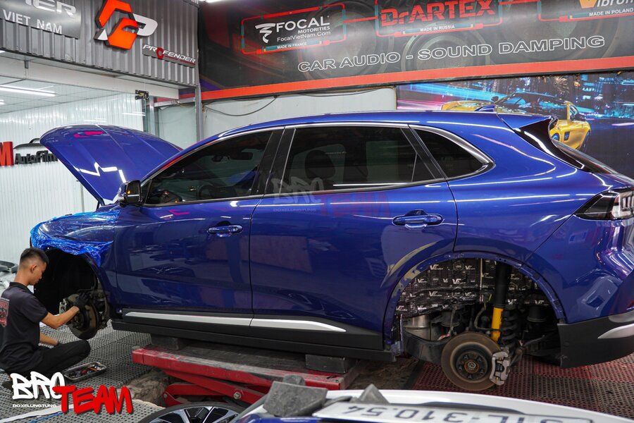 Cách âm hốc bánh xe Vinfast VF8 là giải pháp hiệu quả để giảm thiểu tiếng ồn từ bên ngoài xâm nhập vào khoang lái. Bằng việc sử dụng các vật liệu cách âm chuyên dụng và kỹ thuật thi công chuyên nghiệp, quá trình này giúp triệt tiêu tiếng ồn từ lốp xe, tiếng sỏi đá va đập, tạo cảm giác êm ái và thoải mái hơn cho người sử dụng.