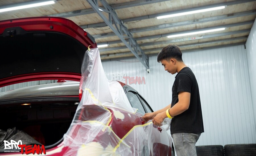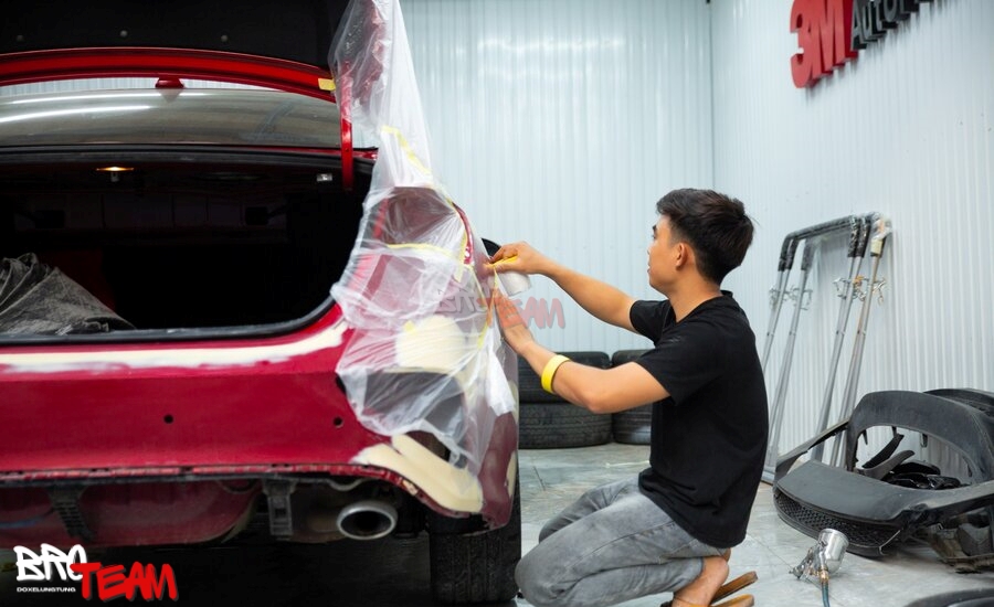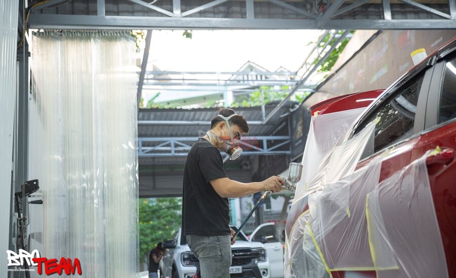 Hông xe: Sơn hai bên hông xe để loại bỏ vết trầy xước và làm sạch.