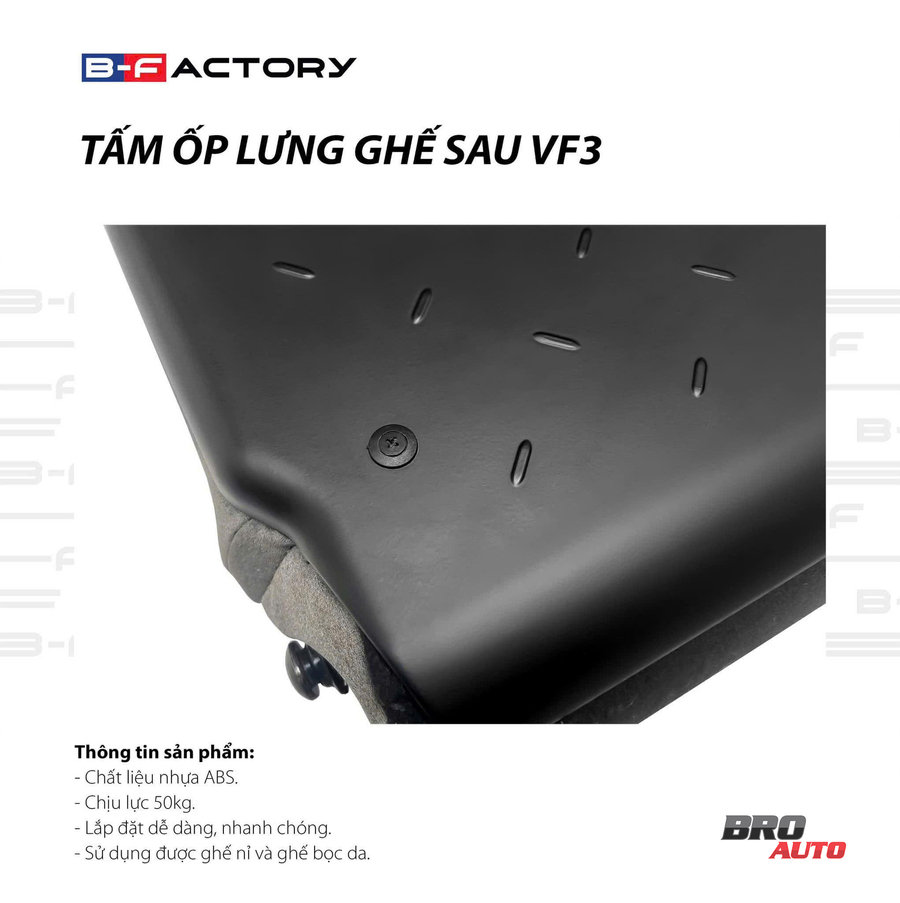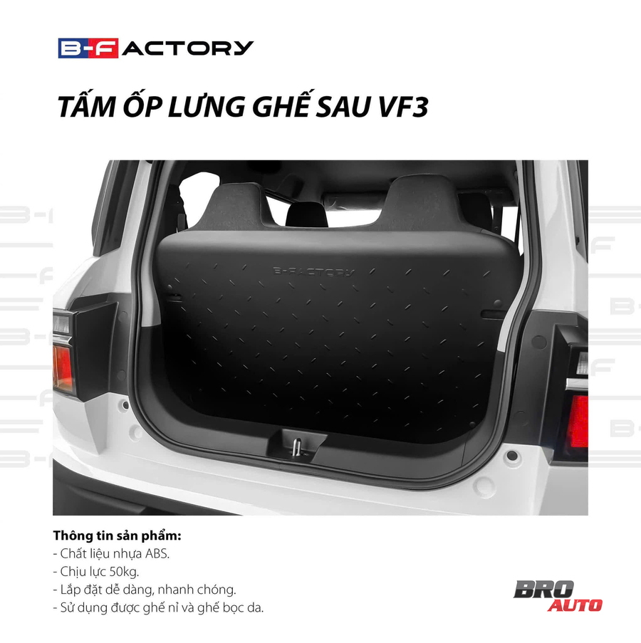 Tấm Ốp Lưng Ghế Sau Xe Vinfast VF3 là giải pháp bảo vệ hoàn hảo, giúp hạn chế trầy xước, bám bẩn và tăng độ bền cho ghế sau. Được sản xuất từ nhựa ABS cao cấp, sản phẩm có khả năng chịu lực lên đến 50kg, đảm bảo độ cứng cáp và bền bỉ theo thời gian. Thiết kế chuẩn form, lắp đặt nhanh chóng, phù hợp với cả ghế nỉ và ghế bọc da. Không chỉ bảo vệ, tấm ốp còn mang lại vẻ gọn gàng, hiện đại cho khoang nội thất. Nâng cấp ngay tại BRO TEAM – xưởng độ xe chuyên nghiệp, mang đến chất lượng và sự khác biệt!