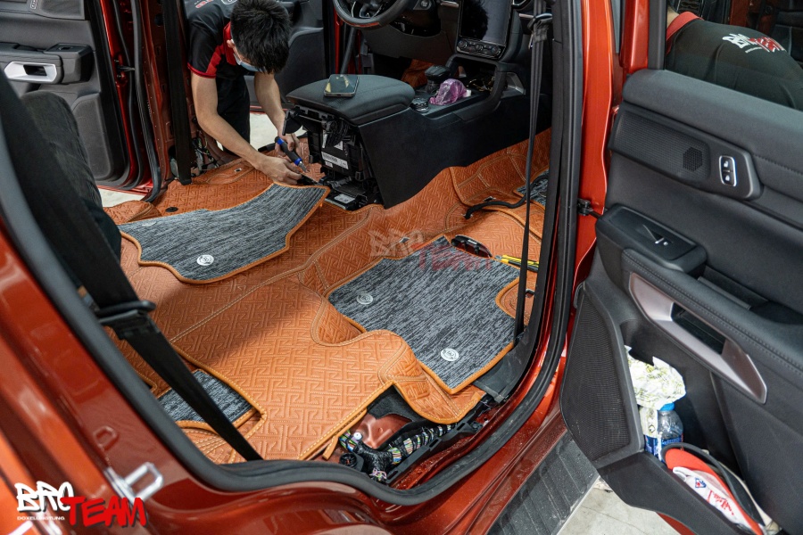Thảm lót sàn Ford Everest 360 độ cao cấp là lựa chọn hoàn hảo cho những ai muốn nâng tầm nội thất xe. Với thiết kế phủ kín toàn bộ sàn, thảm bảo vệ sàn nỉ khỏi bụi bẩn và đất cát, đồng thời tạo điểm nhấn sang trọng với chất liệu da Nappa cao cấp và họa tiết tinh tế. Lớp rối chống bẩn dễ tháo lắp giúp việc vệ sinh trở nên đơn giản hơn. Đặc biệt, thảm được lắp đặt cố định, đảm bảo an toàn tuyệt đối khi sử dụng. Đến ngay BRO TEAM để trải nghiệm dịch vụ lắp thảm chuyên nghiệp và nâng cấp xe của bạn!