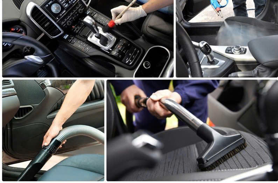 Thu dọn đồ đạc trong xe như giấy tờ và các vật dụng cá nhân. Sau đó, sử dụng máy hút bụi chuyên dụng để làm sạch bụi bẩn, bao gồm cả khu vực khó tiếp cận như khe cửa, cốp xe.